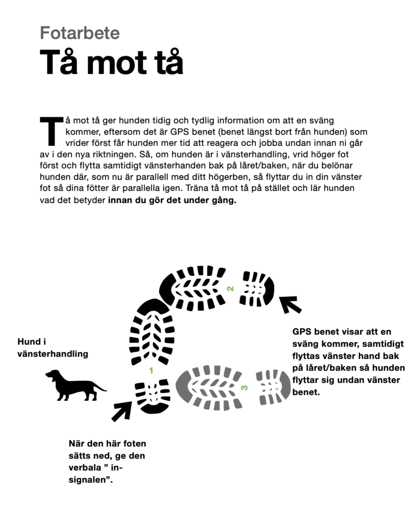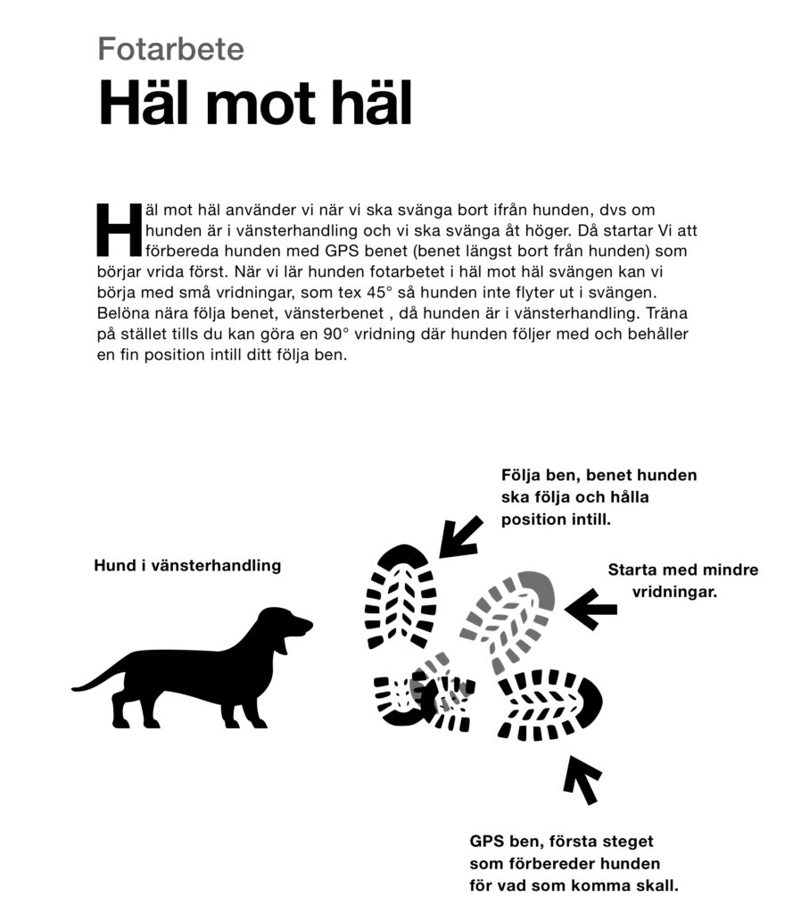Hittills har lektionerna gått ut på att lära hunden själva positionen och tekniken i fotgåendet, men vi behöver även tänka på fortsättningen. Det vill säga skapa en uthållighet i fotgåendet. Det betyder att vi måste välja vad det är vi ska träna på i varje träningspass, är det tekniken du vill slipa på, eller är det uthålligheten du vill jobba på. Båda delarna behövs för att få till ett bra fotgående som håller en hel bana.