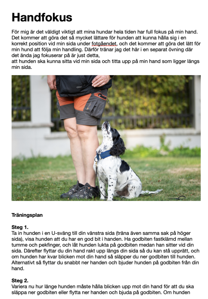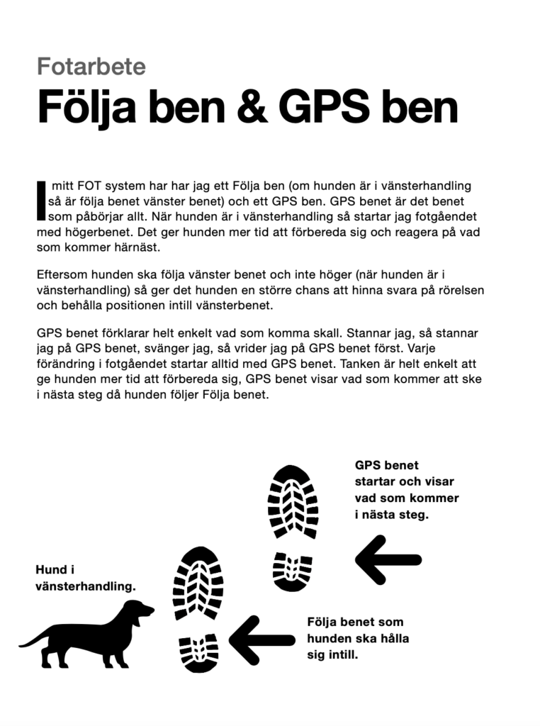 Kurser jag rekommenderar för att komplettera FOT med och för att även stärka fotgåendet är FOKUS receptet (kommer snart som online kurs) som lär hunden den viktigaste ingrediensen av dem alla, att stanna i bubblan och hålla fokus på dig och sin uppgift. Den andra är Handling, där du får ännu mer av GPS systemet, som även det är en viktig pusselbit. Att kunna förbereda hunden för vad som komma skall är A och O för ett perfekt flyt. Även Handling kommer att komma som onlinekurs.