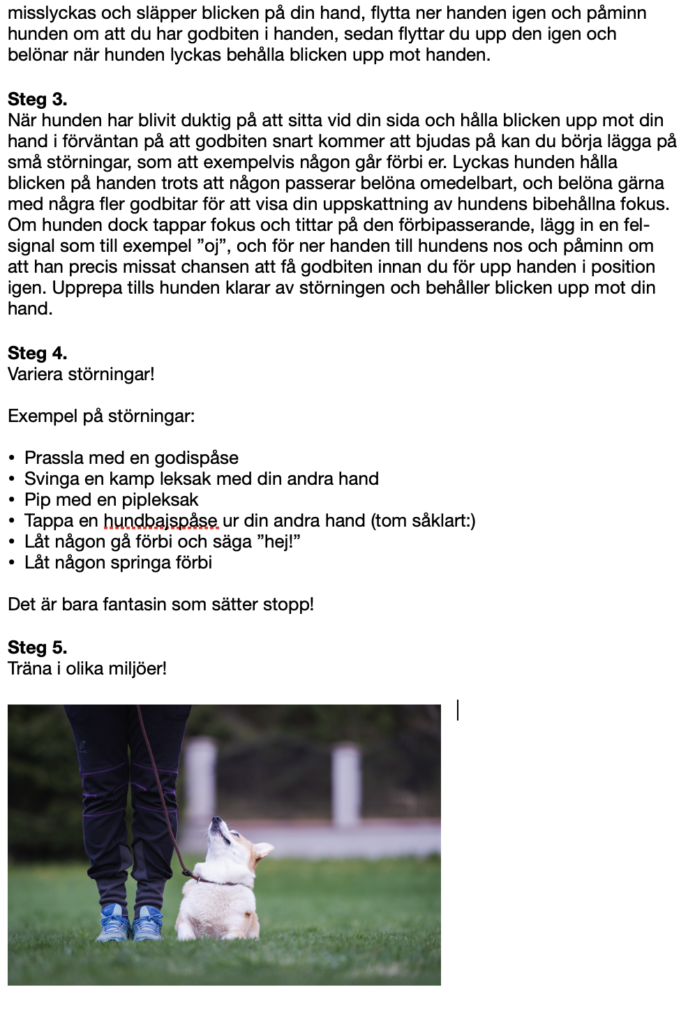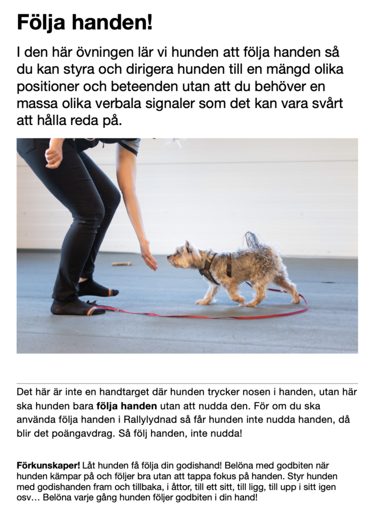 Grattis! Du har tagit dig igenom alla lektioner och har förhoppningsvis haft det roligt med din hund under vägen. Så hur fortsätter du? Eftersom det händer så väldigt mycket i en Rallybana så blir lätt fotgåendet lidande, generellt så läggs inte lika mycket kärlek på just fot som på alla moment i Rallyn eftersom de är så många och alla behöver tränas. Men! Fotgåendet ÄR klistret som håller allt ihop, utan det kommer även momenten bli lidande. Så jag skulle rekommendera dig att fortsätta att investera i fotgåendet.